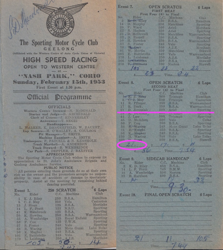 Thanks to our historic records custodians and generosity of former club members, we have managed to collate a variety of interesting club memorabilia. We are excited to be able to celebrate Daves milestone today and recognise him as one of the many champions who have contributed to the rich and diverse history of the Sporting Motorcycle Club over the past 89 years.