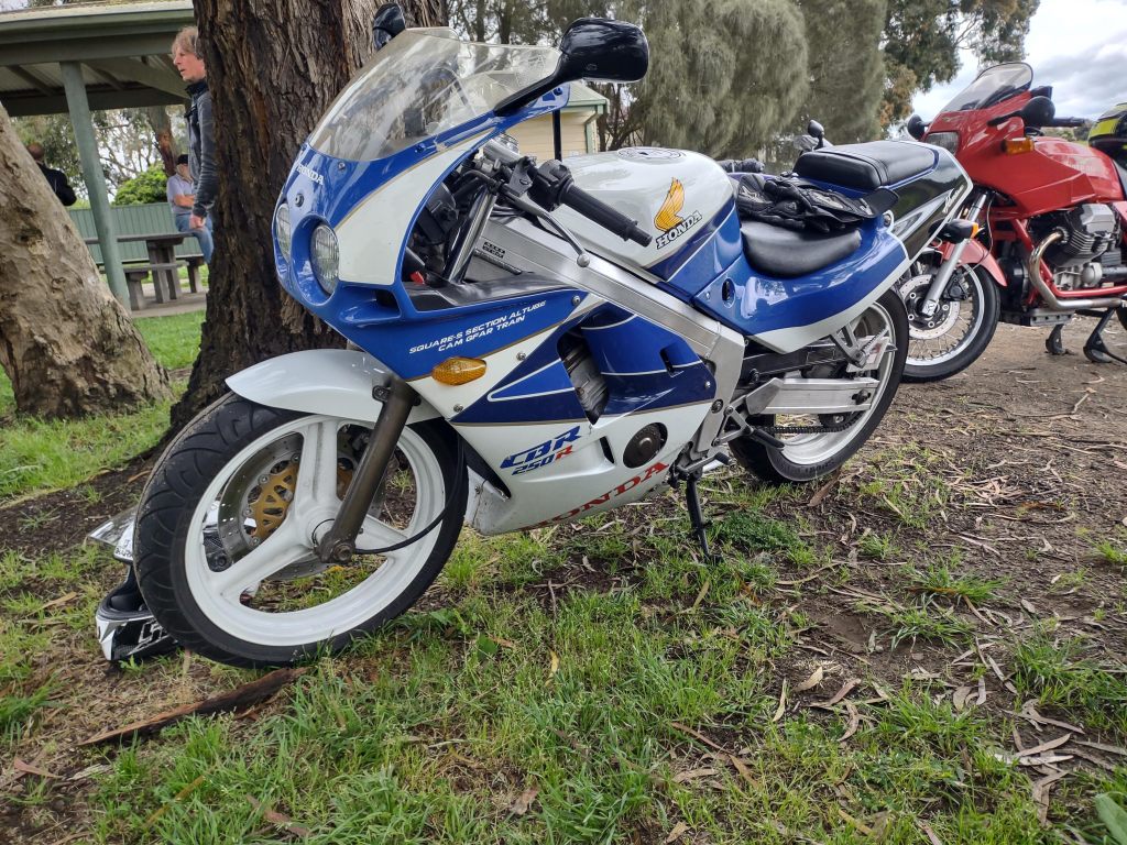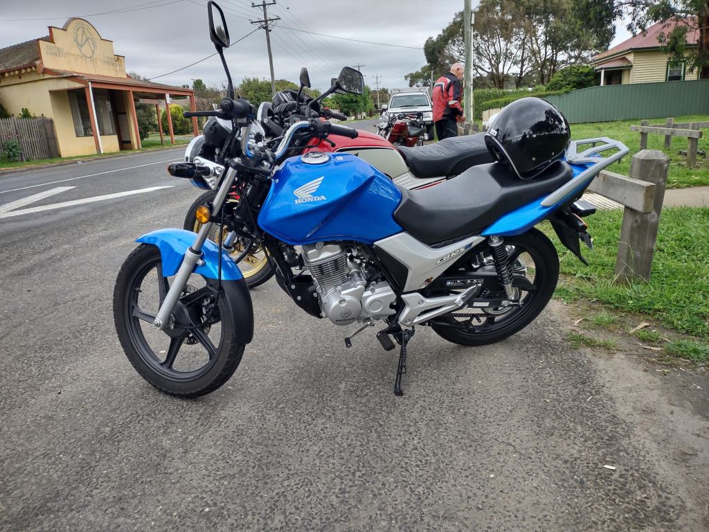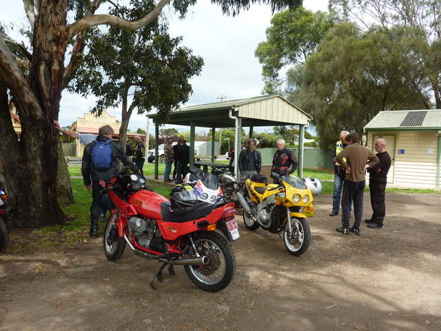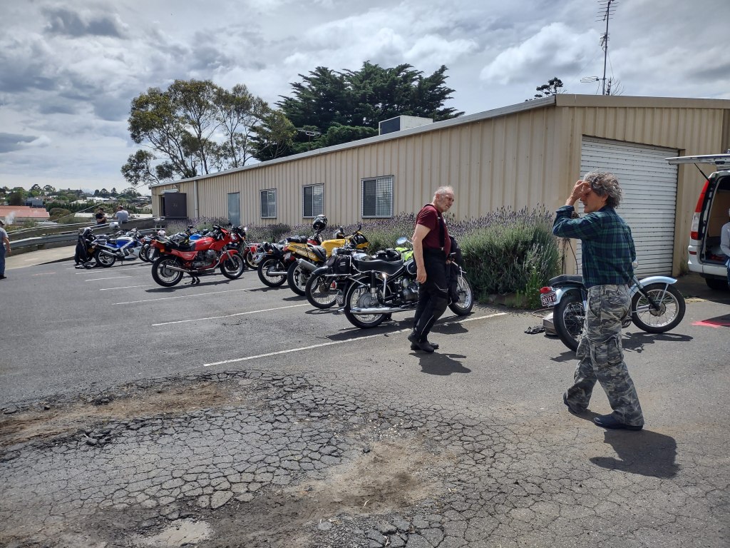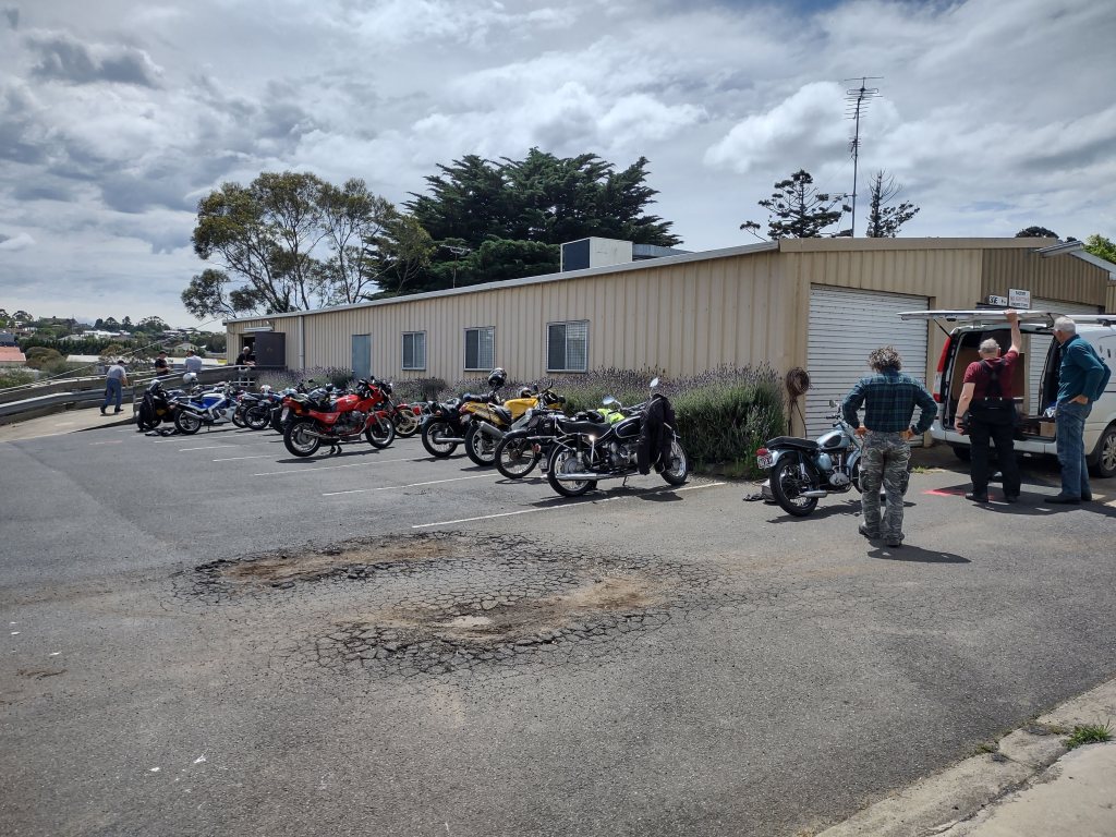 Twenty riders and 1 car turned out for our annual Tiddler Tour, a shorter and slower ride than normal aimed at encouraging our members to bring along their smallest capacity bike or their oldest one, covering just over 80klm on a round trip via Ceres, Gnarwarre, Wurdibullock, Modewarre and onto Moriac for a coffee stop, and then back to the club rooms via Ceres for a BBQ lunch.