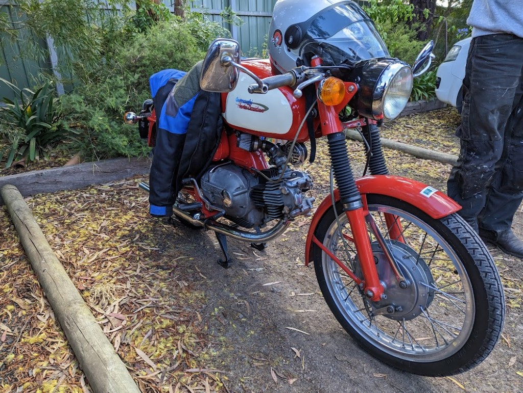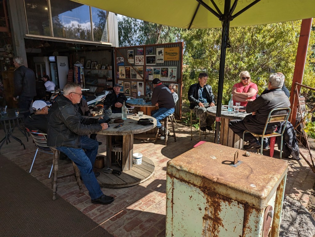 Great ride today to The Old Workshop Cafe at Anakie with 12 riders attending where we were warmly welcomed by the owners and treated to great food and coffee by their ever polite and efficient staff. A good eclectic mix of bikes attended including moderns and oldies varying from Aermacchi, Moto Guzzi, Ducati, Honda’s, BMW’s, Triumph, Harley D and Yamahas.