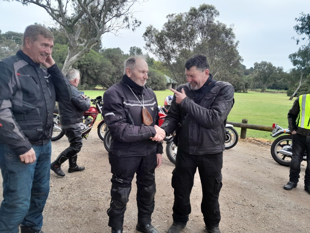 Don has won this prestigious award to help cheer him up & hopefully break his run of bad luck he has recently experienced with his German sewing machines, aka Vintage BMWs. Don’s recent bad luck included a mysterious breakdown due to fuel tap in the wrong position, broken clutch cable and punctured tyre 100M into the ride. A Top bloke just out of luck!,