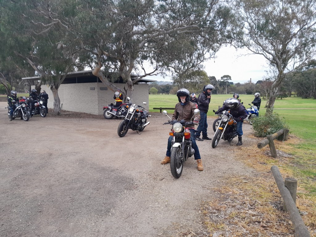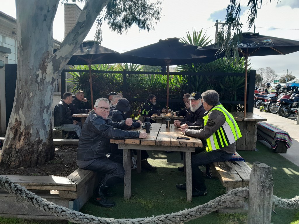 13 Riders headed off this morning with perfect conditions, Destination Cafe la Hoot Winchelsea, some of the riders’ bikes still warm from yesterday’s BUSH ‘N’ ROAD Ride, when too much riding is never enough.