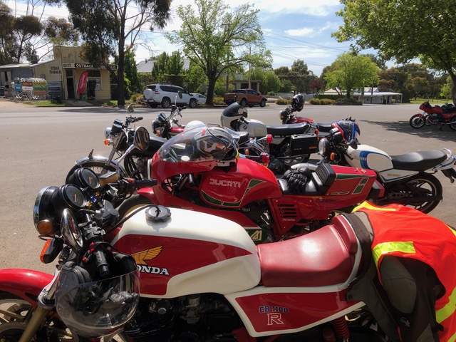 The weather was clear and sunny, and the roads were dry. We decided to spread out a bit without corner marshalling and told everyone to go whichever way they choose, but to meet in Birregurra in about an hour for a coffee and chat at the Birregurra General Store