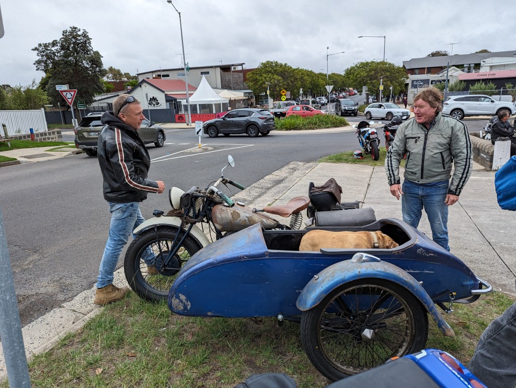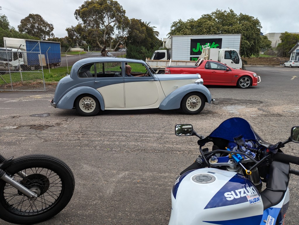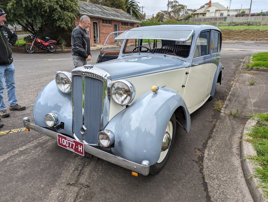 With only one breakdown, Pat’s 1950 Sunbeam S8 did a clutch cable coming into Ocean Grove, but struggled on into the Barwon Heads coffee stop through a couple of sets of traffic lights without the use of a clutch.![]()