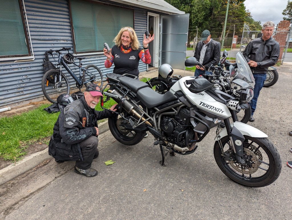 Lenny handed on the Pigs Ear award to Pat, being the only breakdown for the day plus being the lead rider at the same time!