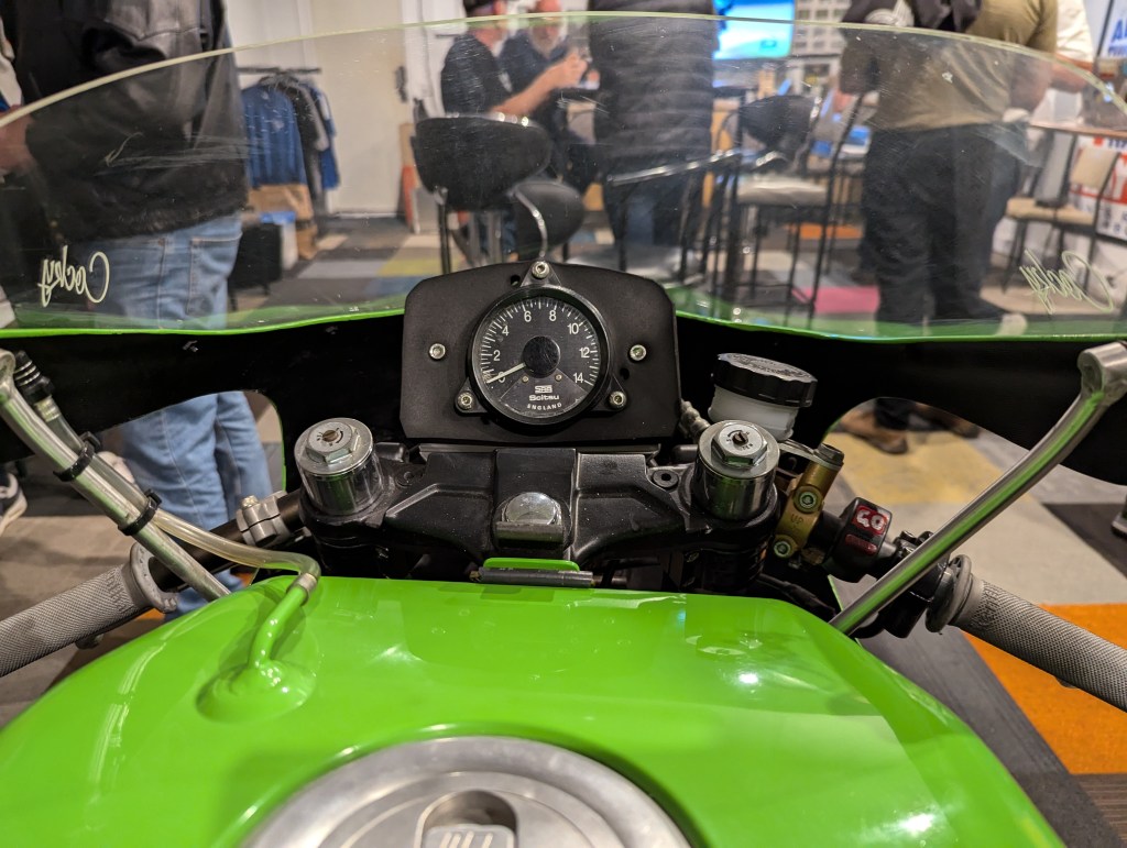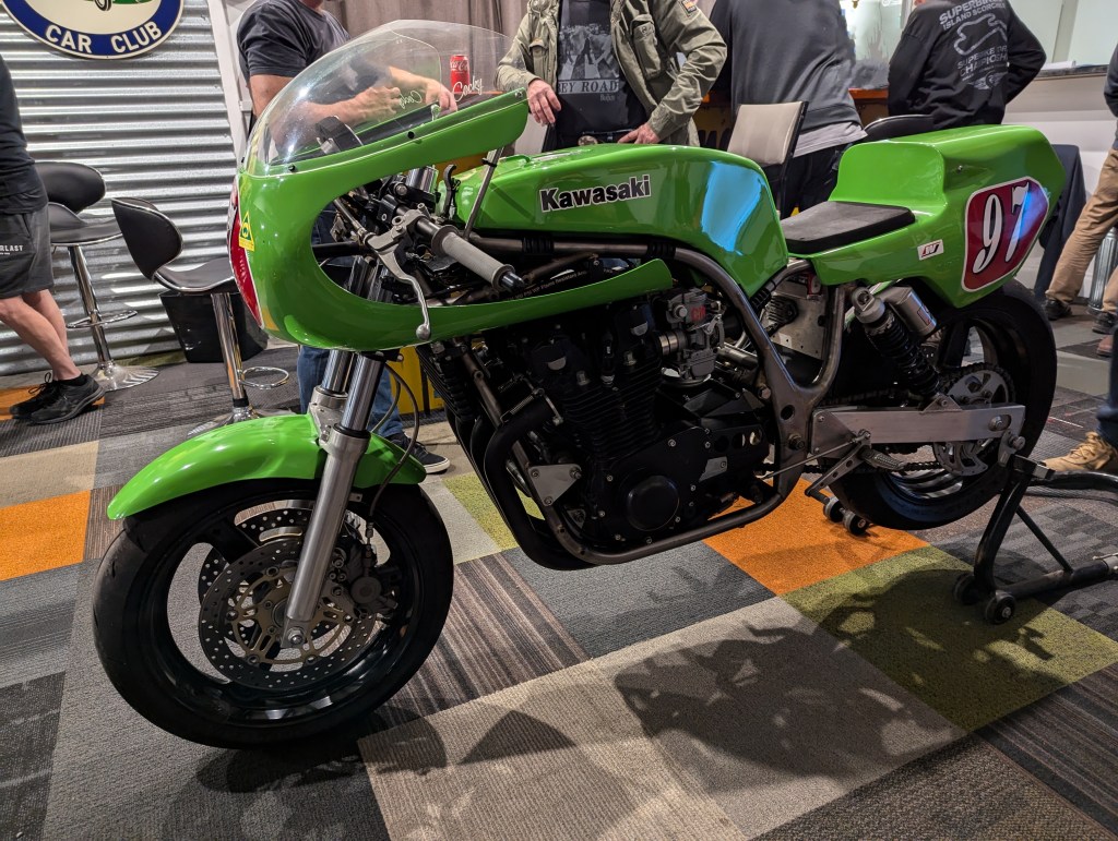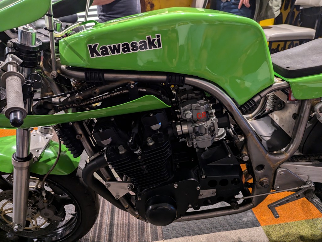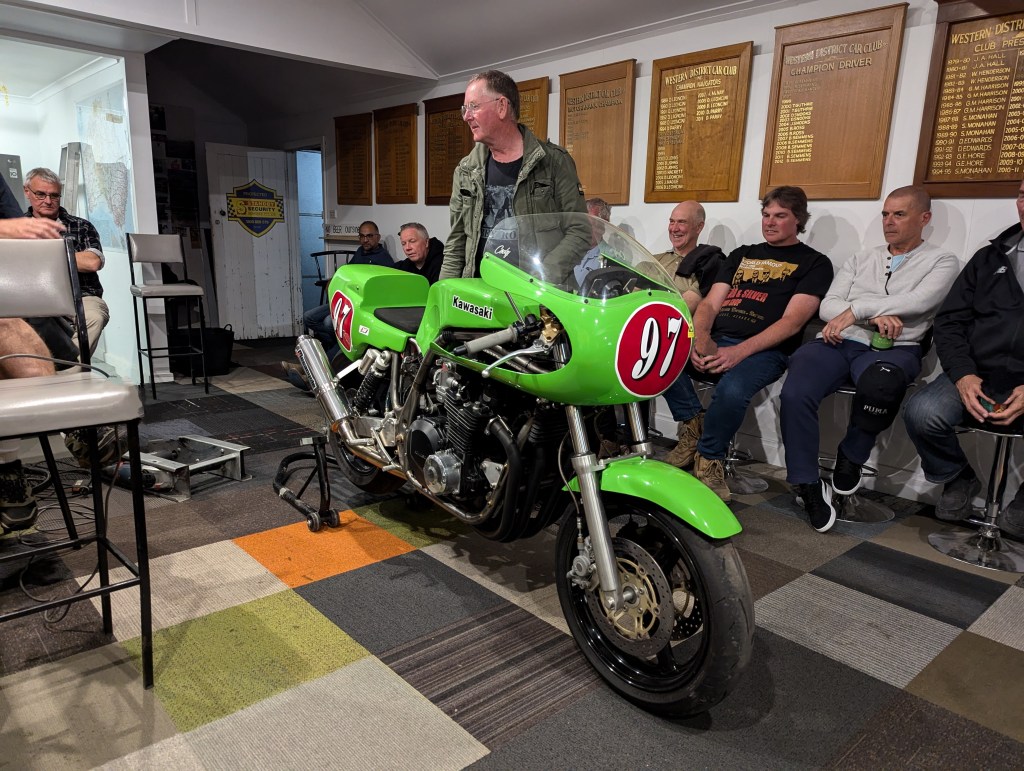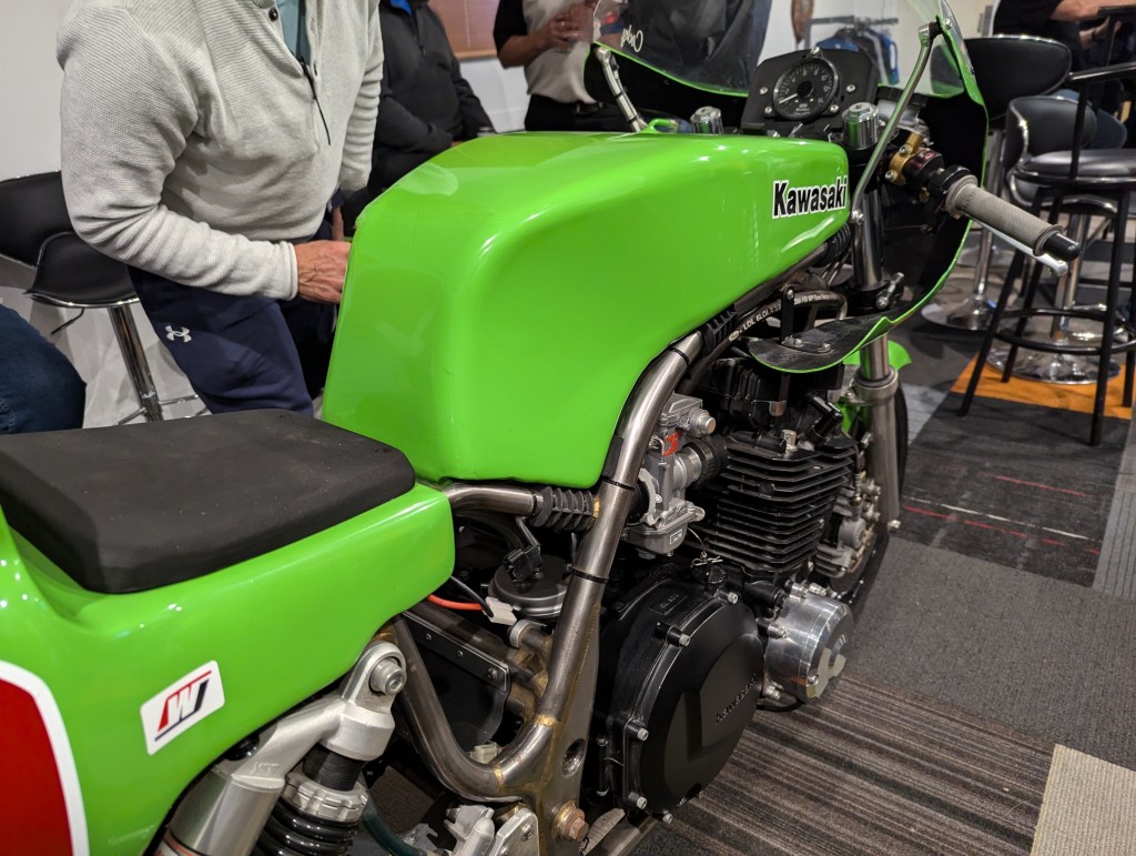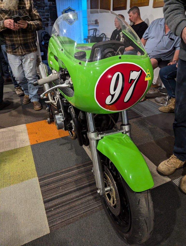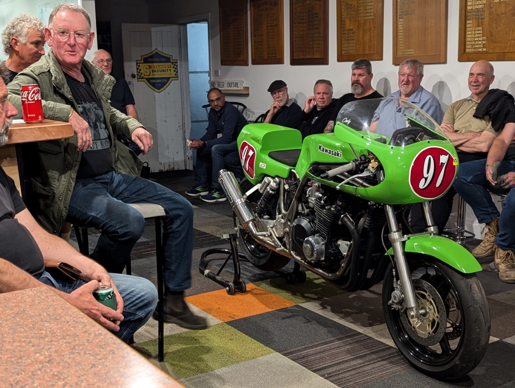 Thanks to Collin O’Connor for bringing along his Harris Frame Kawasaki for the club’s “Show N Tell”