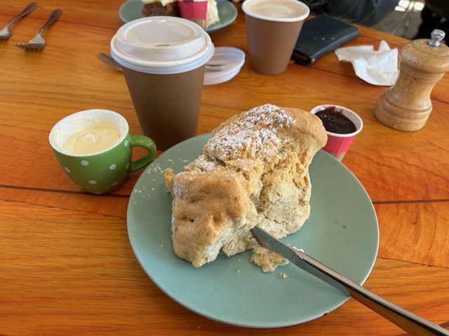 We ordered our coffees and desserts which were huge, my scone was the size of a small loaf of bread with an abundance of jam and cream.