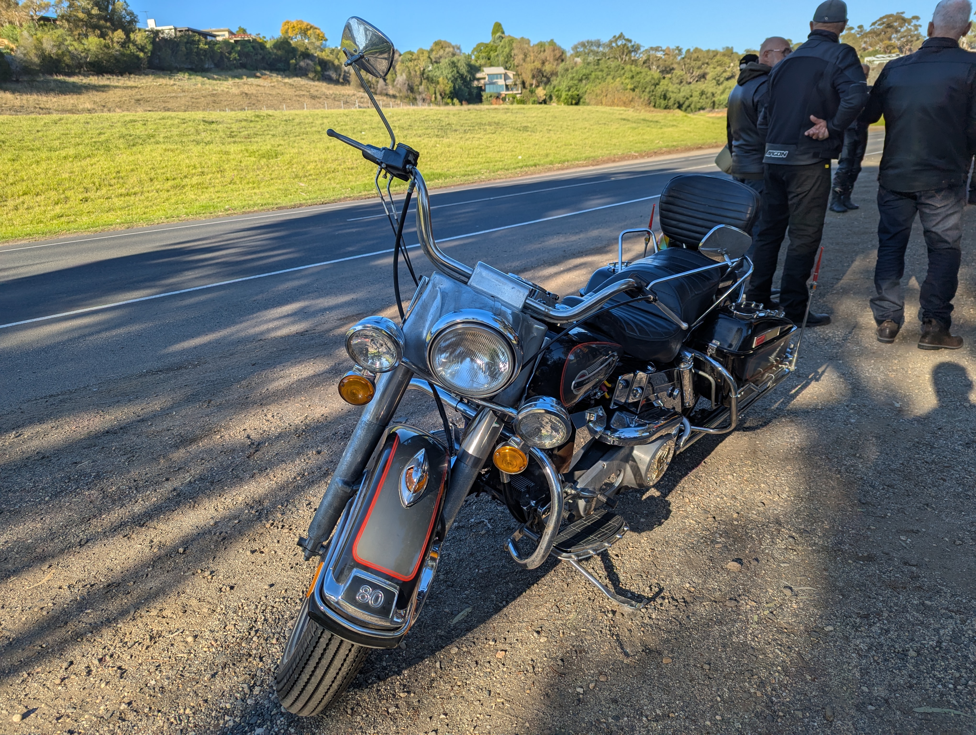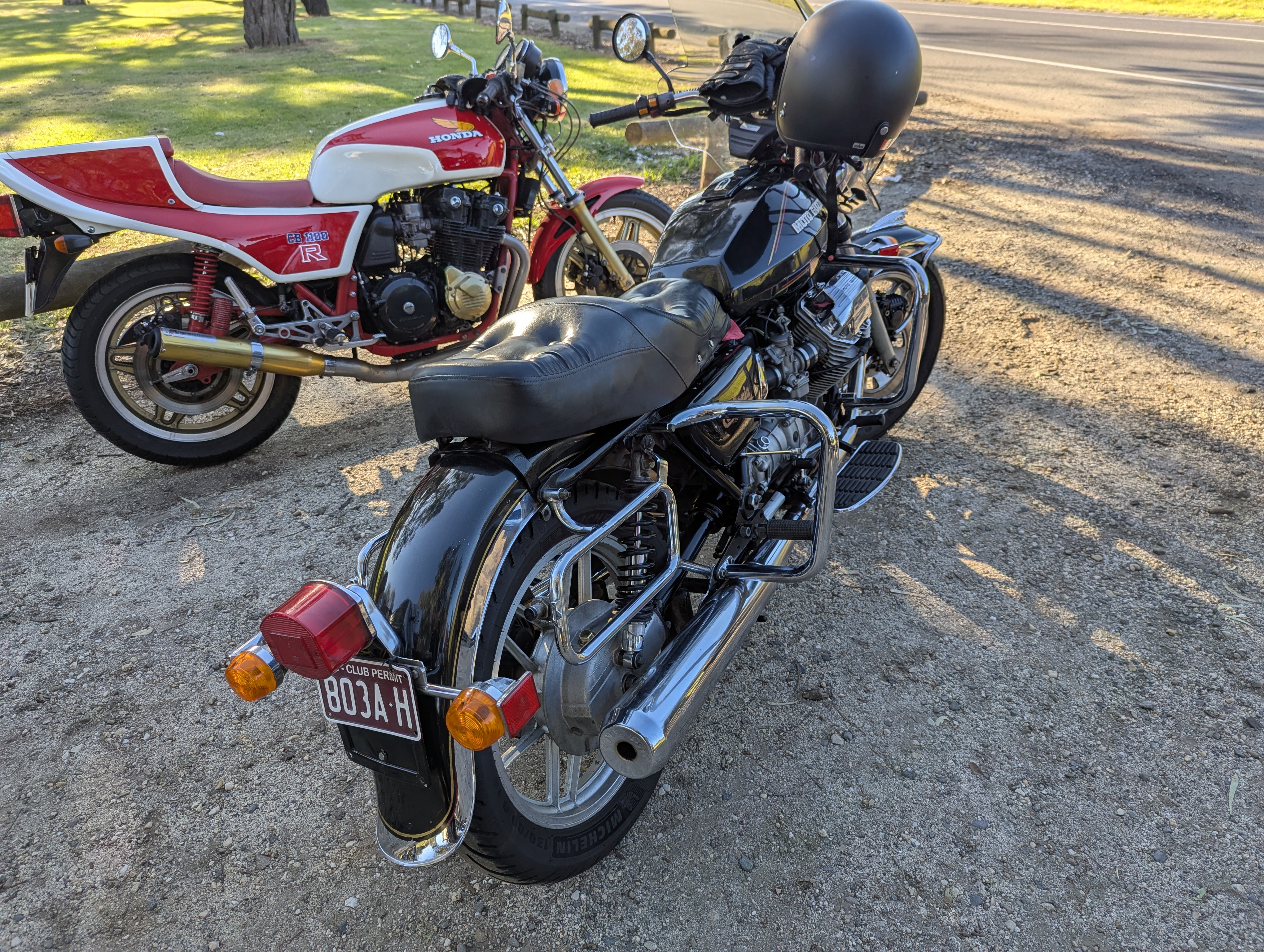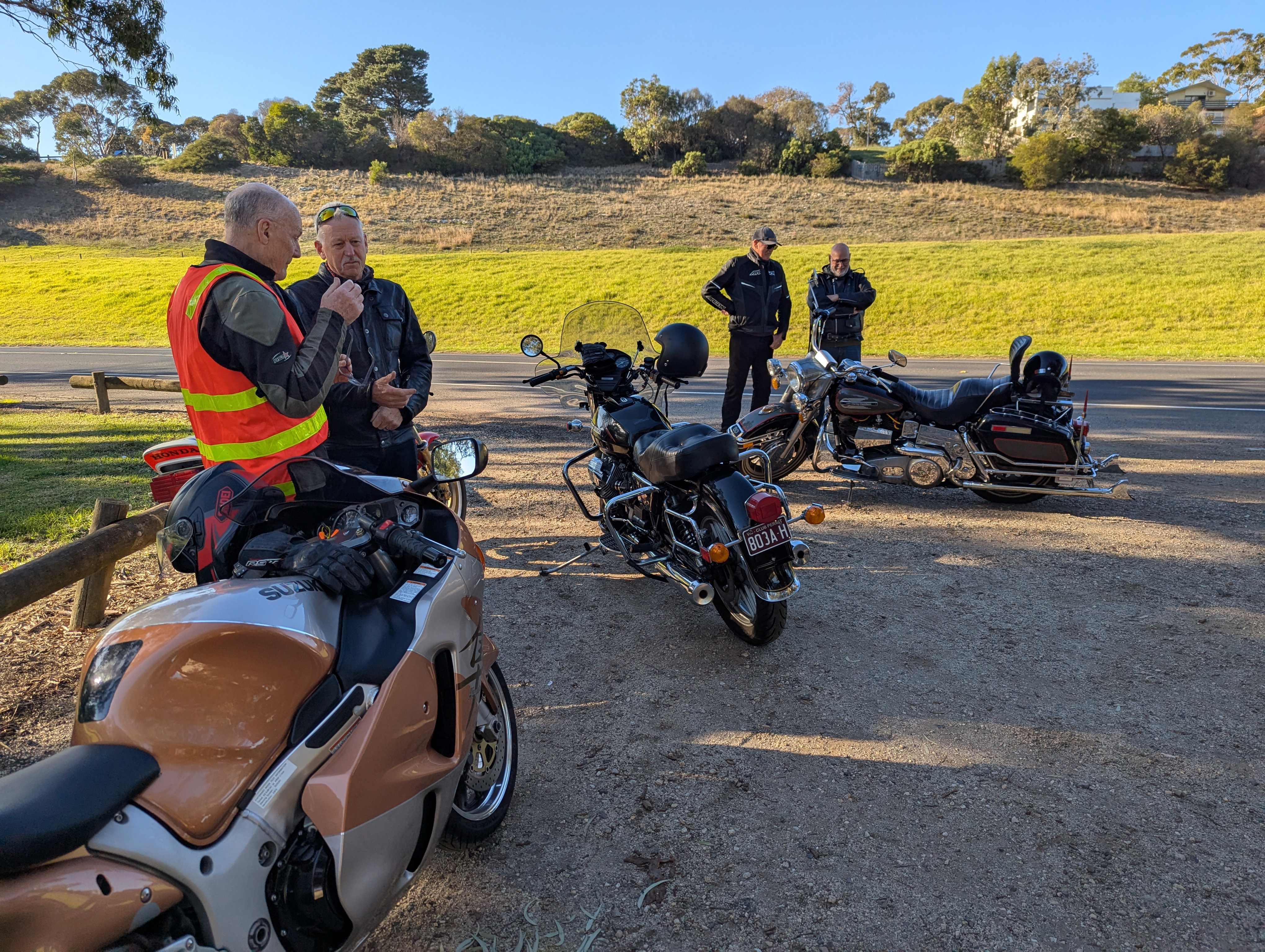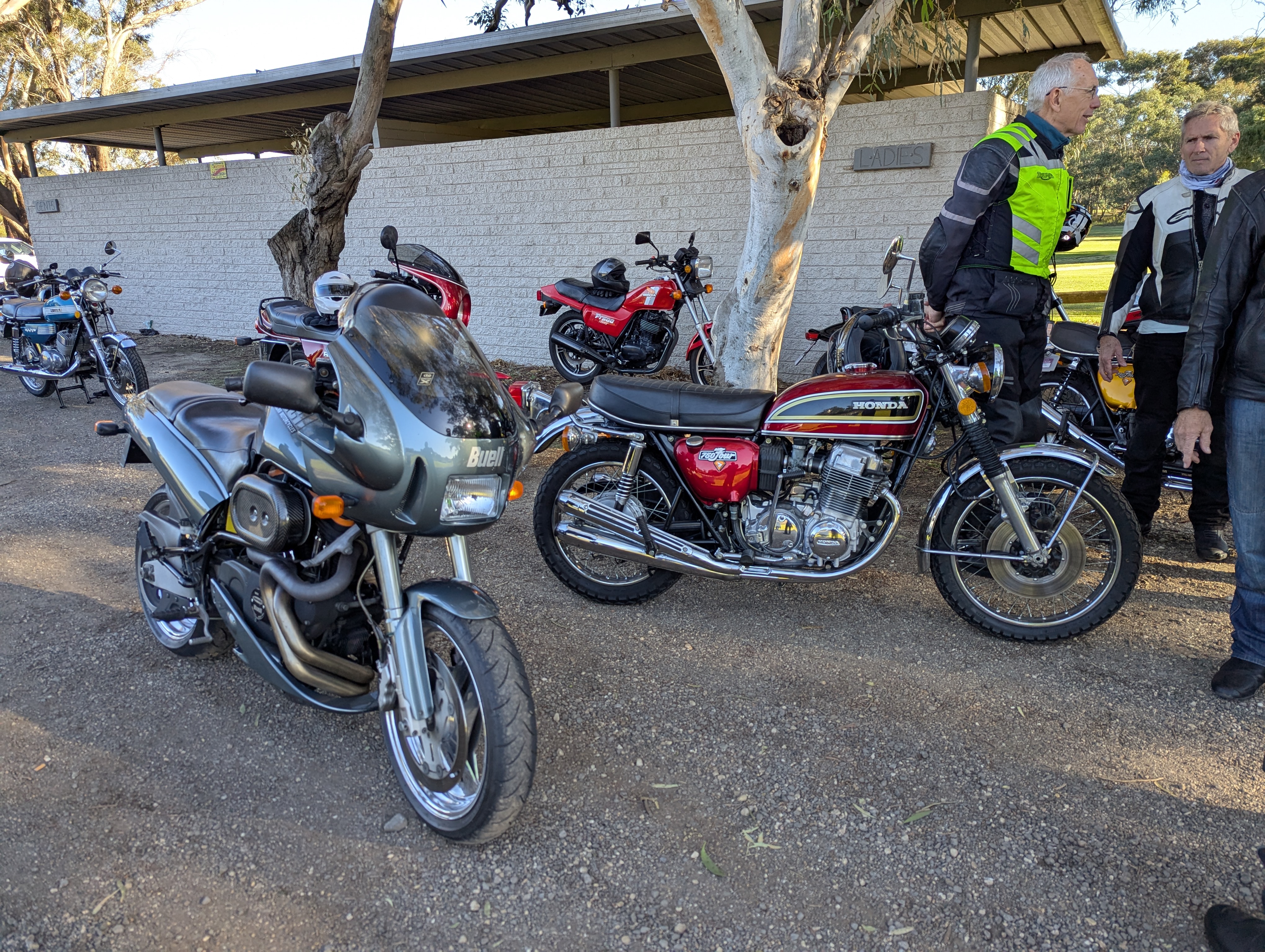 With a few events of note, Ross Bell’s Laverda running on only 2 cylinders requiring Ross to open up the big dellorto carbies to maintain a cruising speed, but a side effect that the hungry Laverda chewed through 15L to do only 80km and leaving Ross out of fuel within site of the Pier St cafe, with assistance from a fellow member Ross was soon arriving at the cafe along with a 5L Jerry Can strapped to the pillion seat.