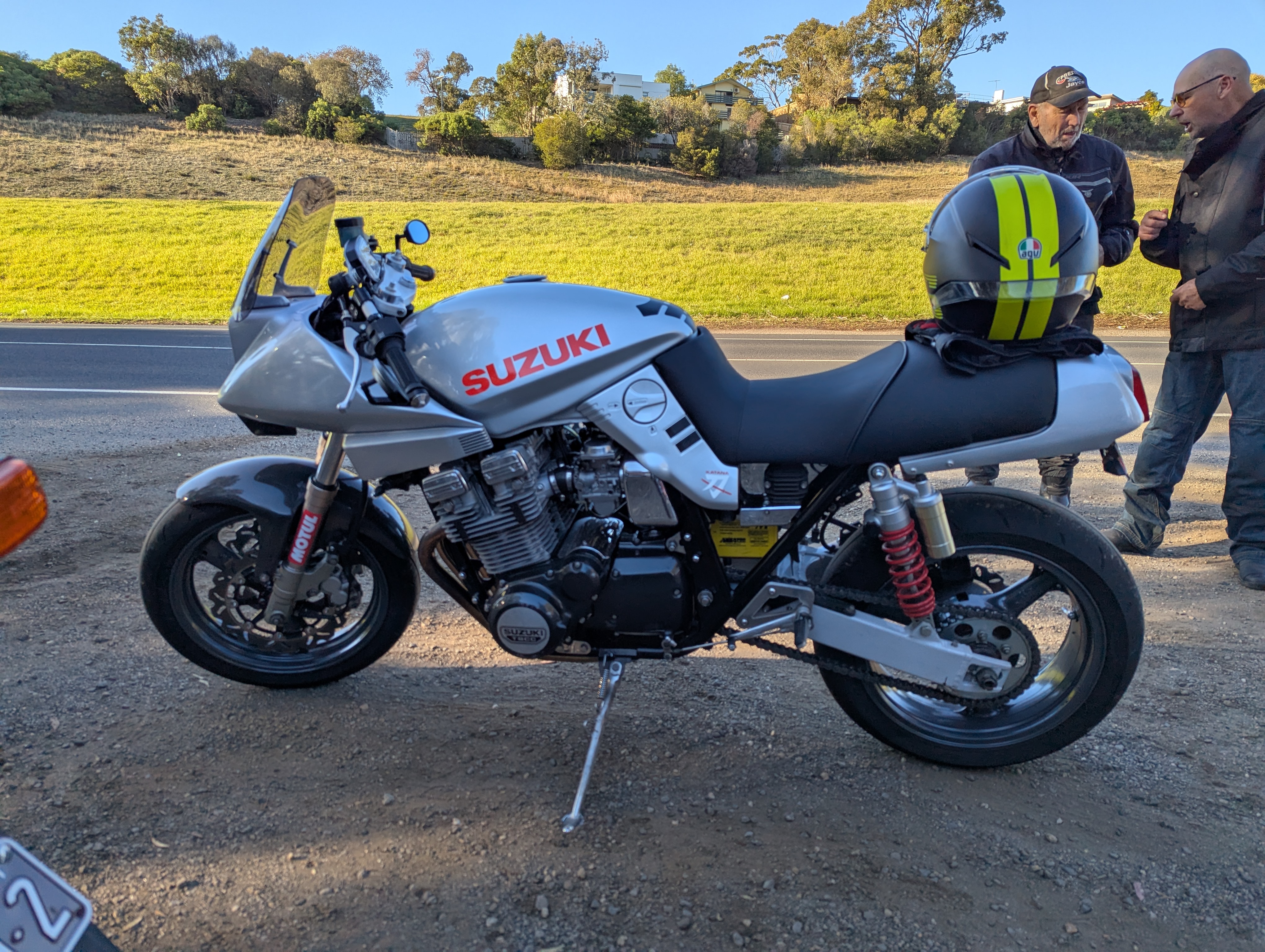 This decision was driven home when the group saw Boardy arrive on his newly finished Katana with it’s tyres still warm from a recent weekend at around Broadford, what a weapon,