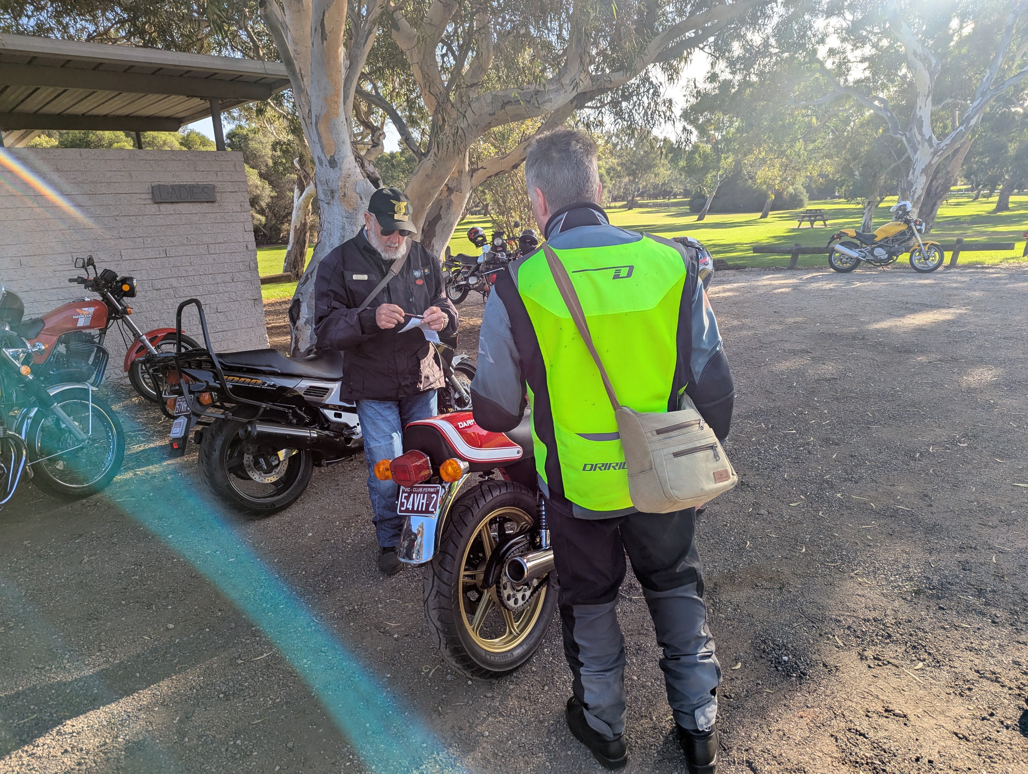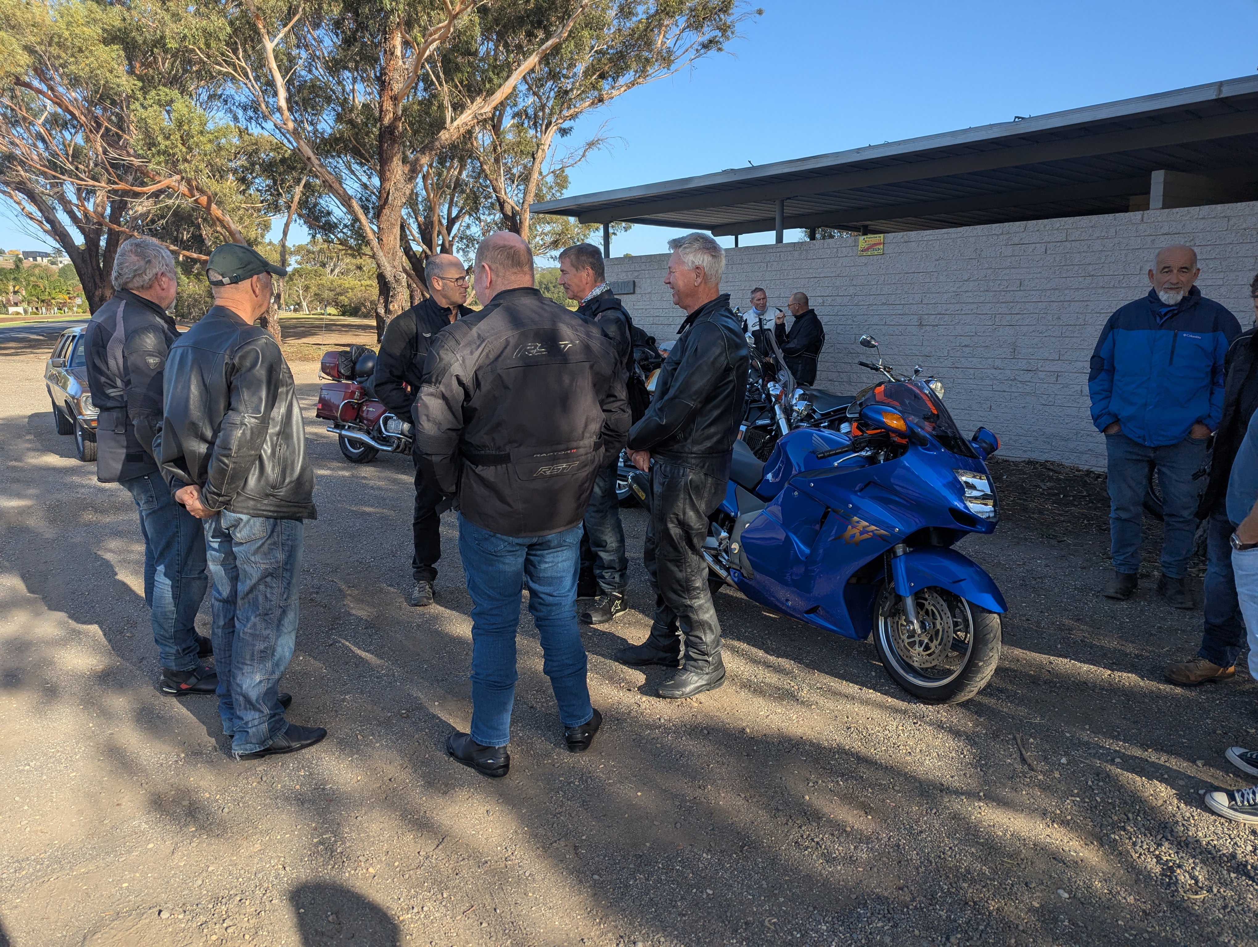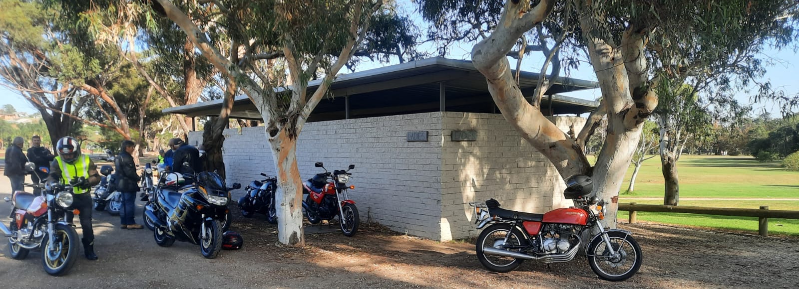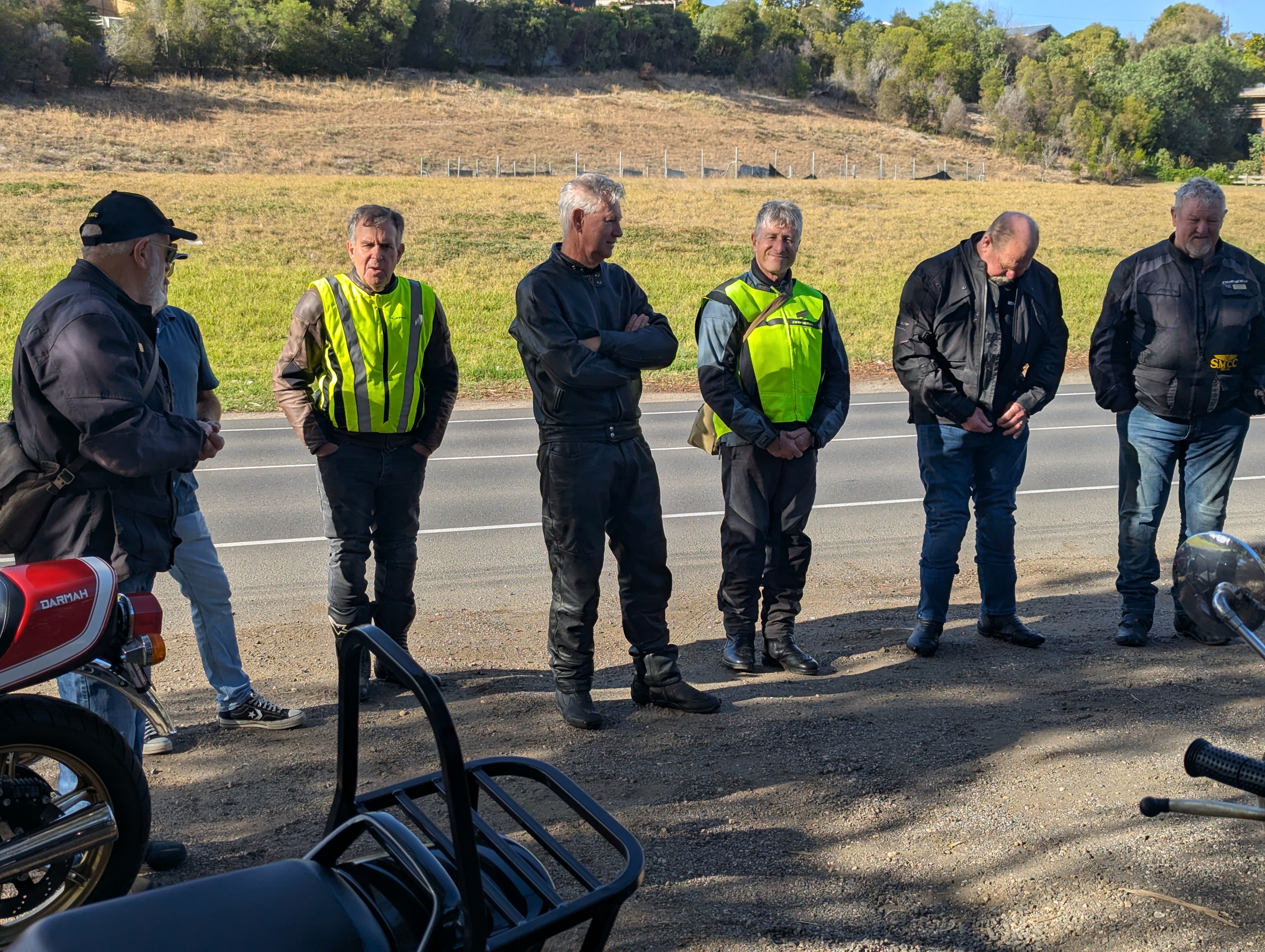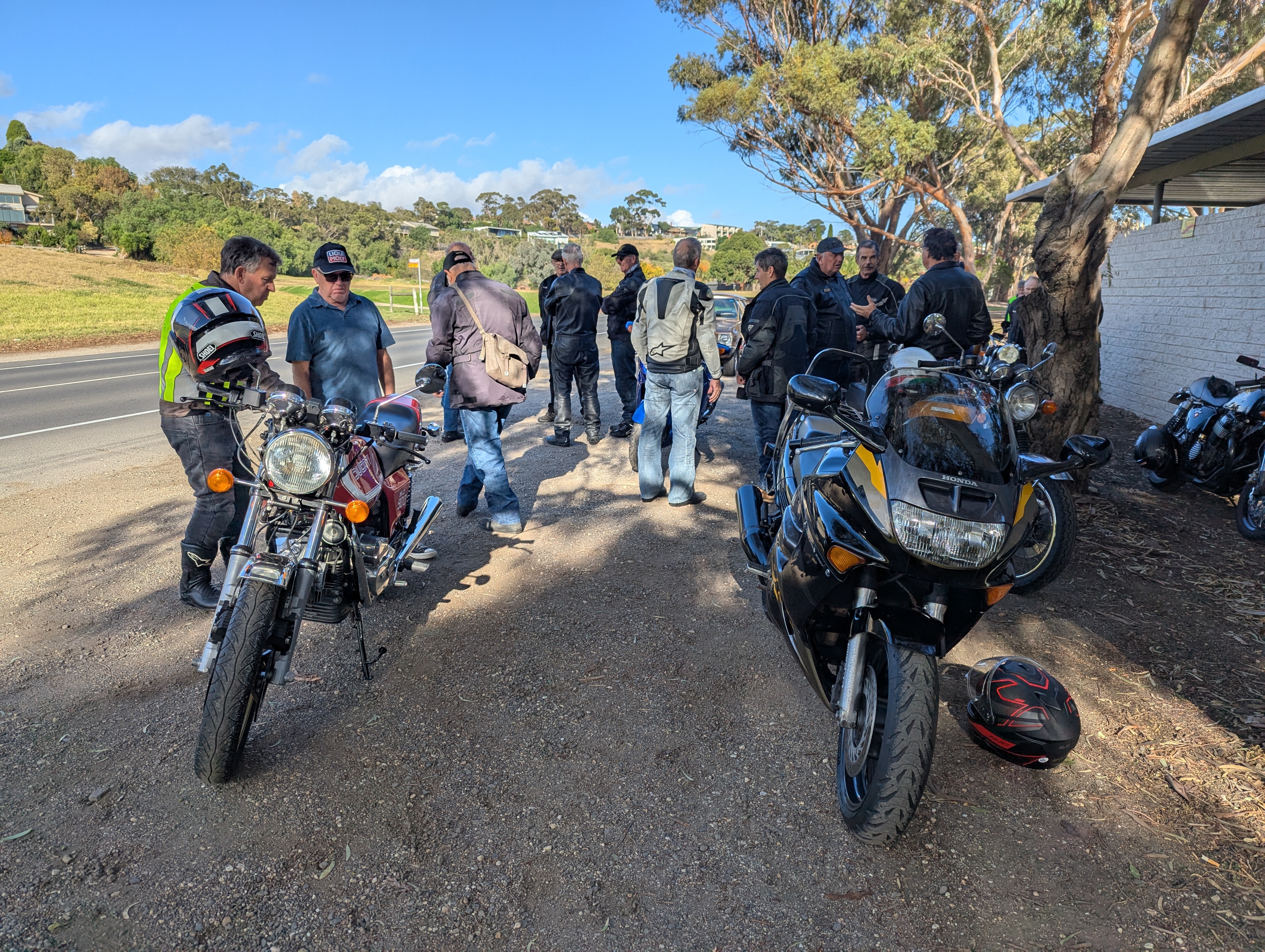 Happy Easter Sportarians, today’s Red Plate Monday riders were given the pre-ride brief and greetings by Mal with the complimentary joke at the end prior to Birthday boy (70th) Wayne B leading the other 17 riders and our tail vehicle Brian’s iconic HQ wagon on a fantastic route ending up at the Moriac General Store for our Coffees, Hot Chocolates and nibbles.