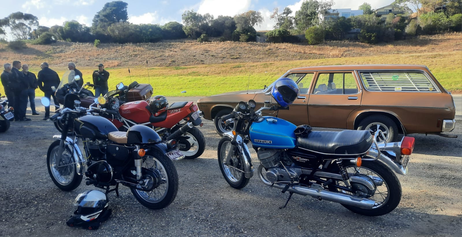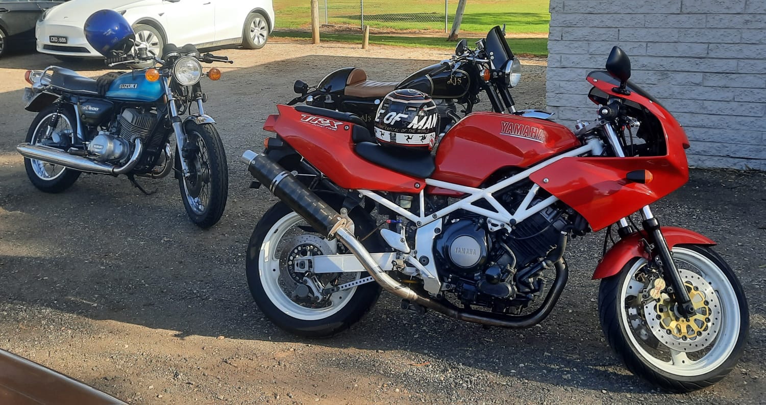 We had a heap of Honda’s, a sprinkle of BMW’s, a dash of European machinery and a 58 model AJS 500/and a Suzuki GT500/2.