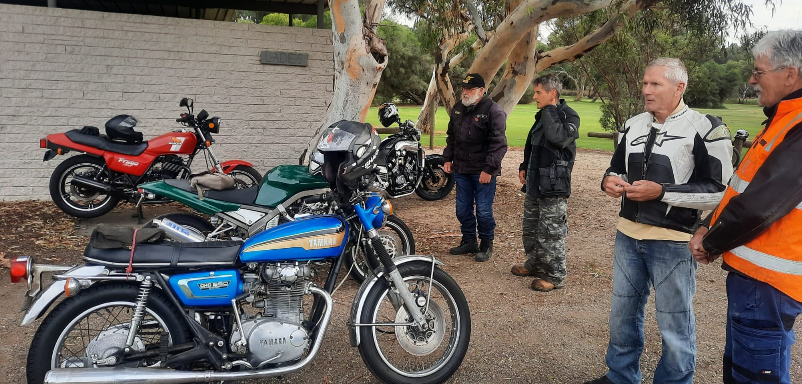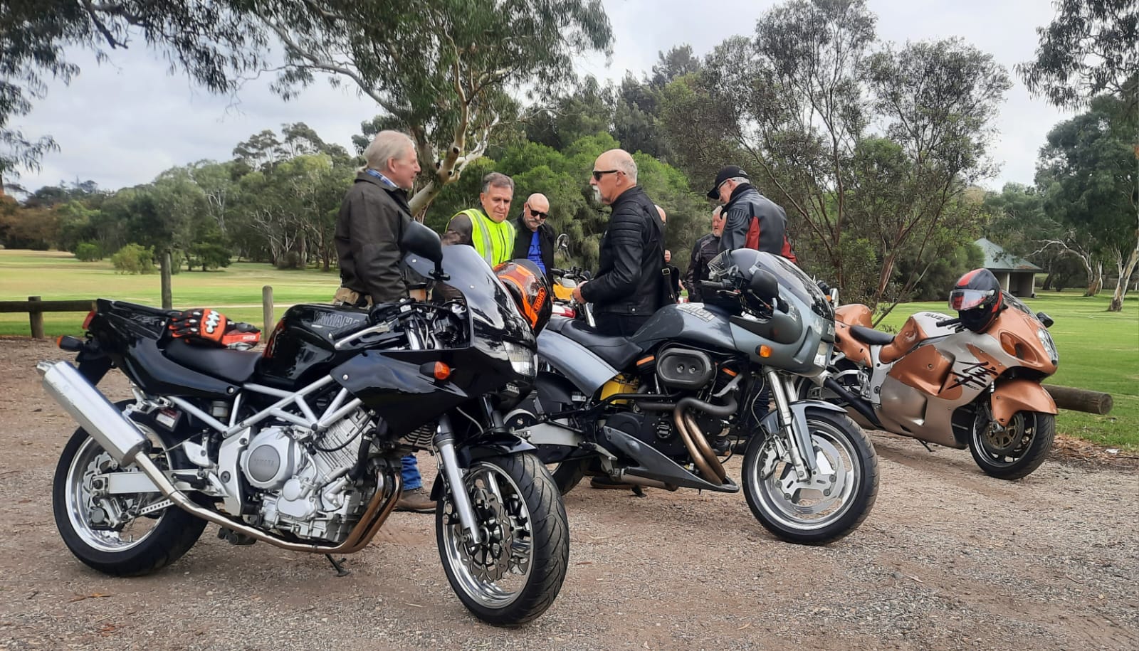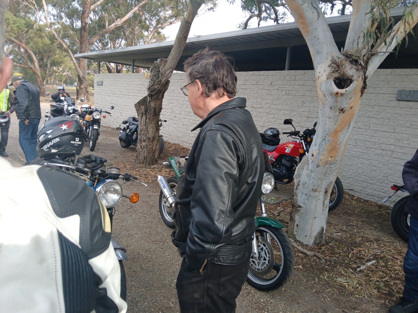 Beakasarus Rex turned up on his Suzuki 650/750? with an electric leg for his second rehab ride, nice to see you back our friend.