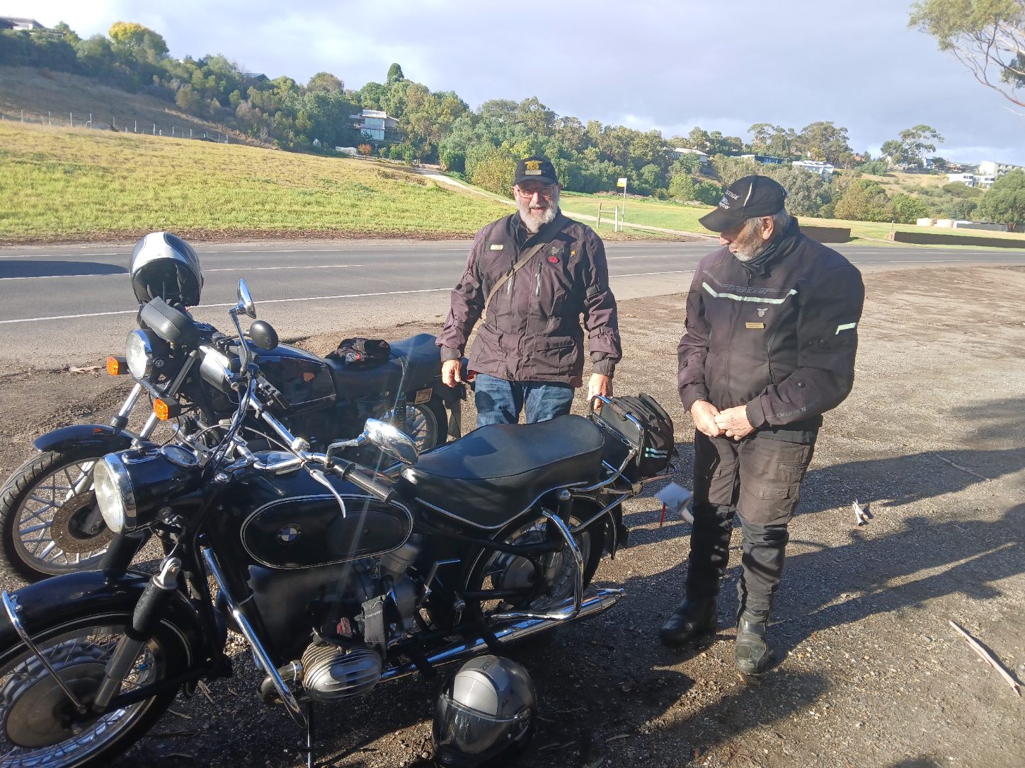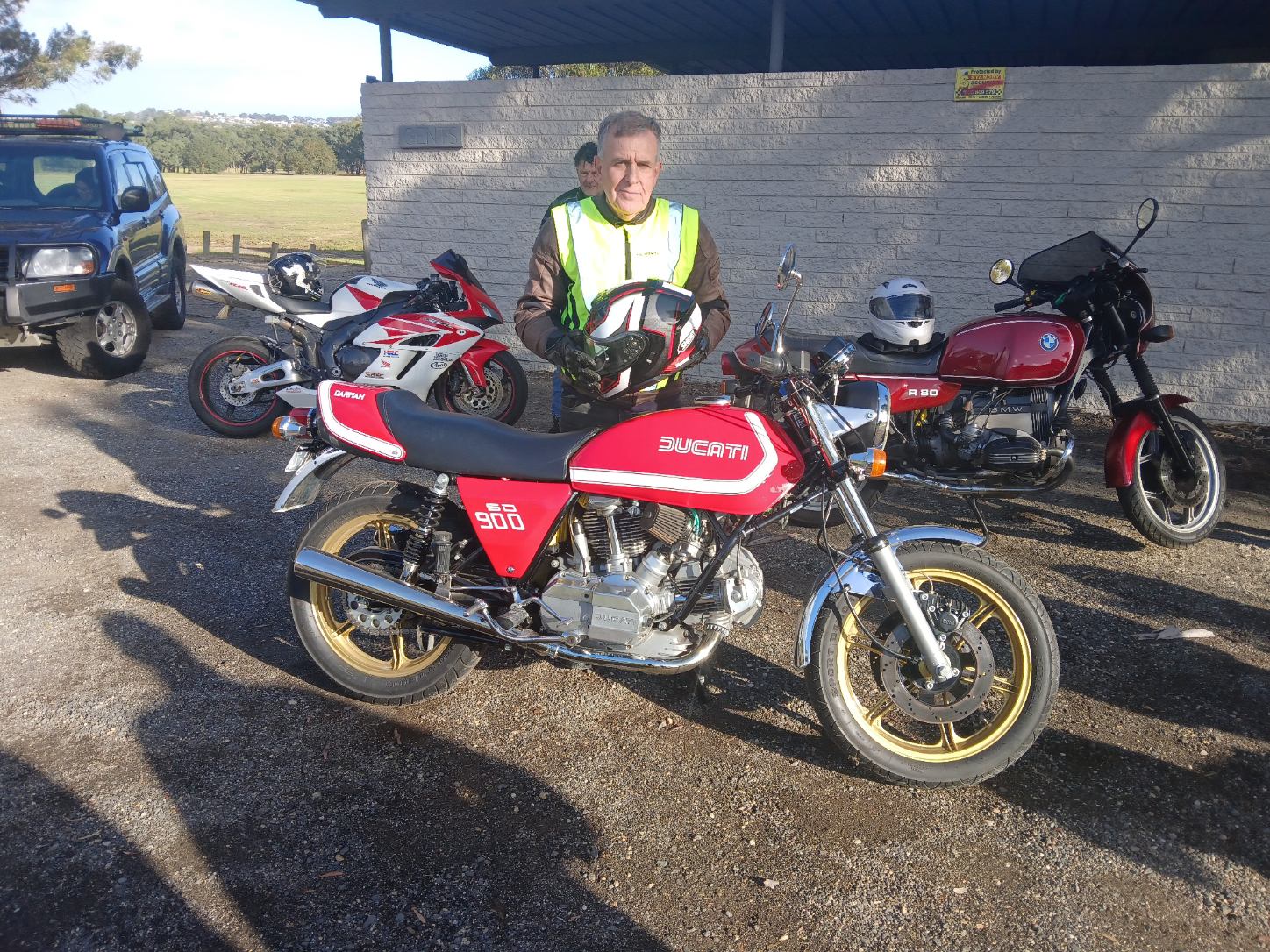 @bloke62 Guy putting his hand up to lead the group, With Sidecar Al taking up the important job of tail rider.