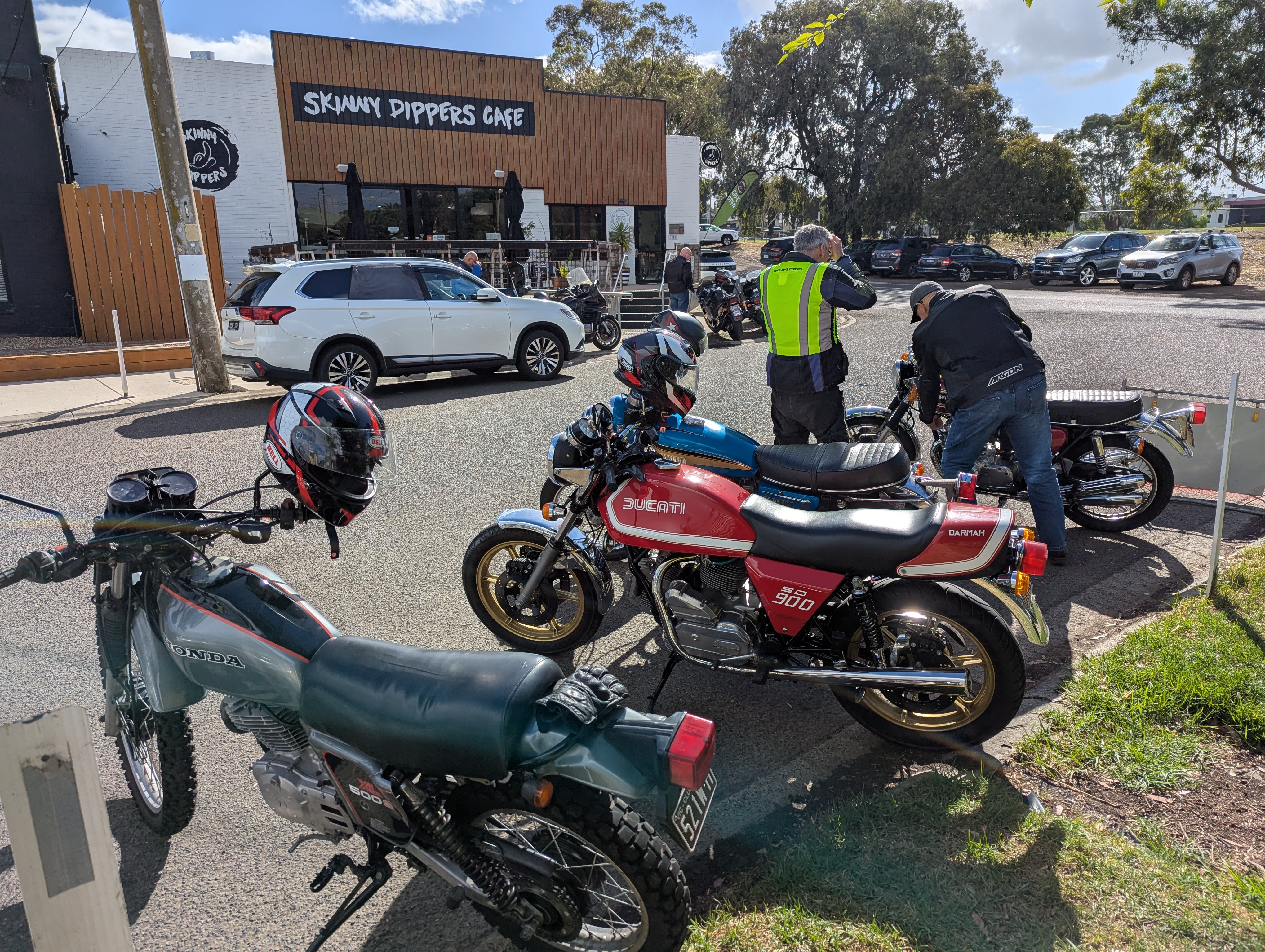 Guy lead the group out through his old stomping ground in the Golden Plains, including looping through Bannockburn and skimming the edge of Anakie, before heading back into town and finishing up at Skinny Dippers cafe in Newtown, where we had coffee and other treats, which included meeting up with Beak, Bernie & crew.