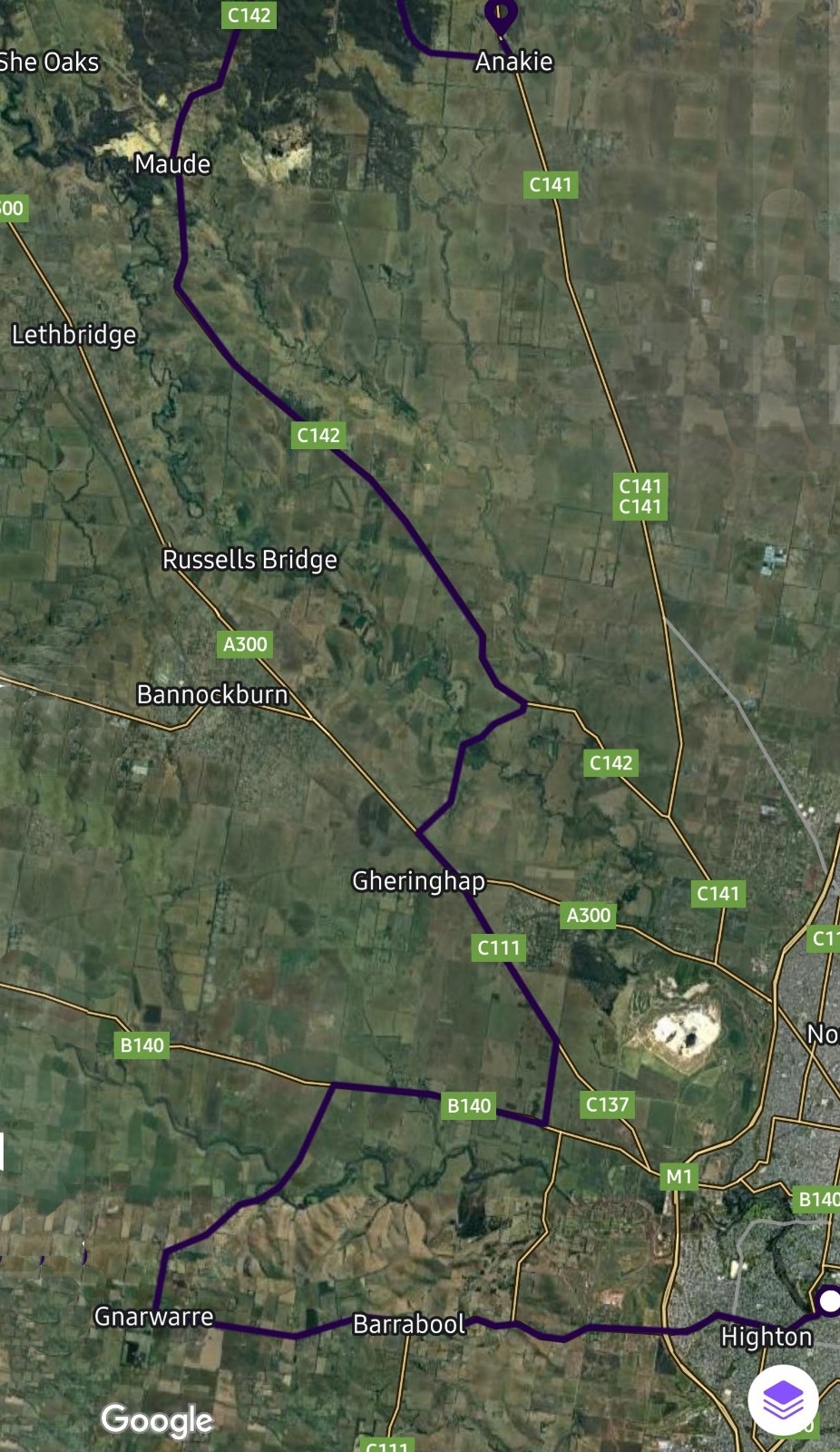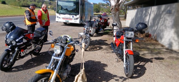 The Group managed to do the river crossing (Dukes of Hazard Style ??) and then headed to Gheringhap, then Bakers Bridge Rd, through Stiglitz and Demonts Rd, with the group pulling into Anakie like Rolling Thunder.