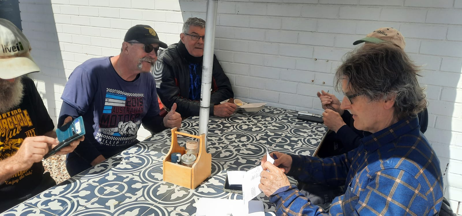 destination decided was Portarlington. Don intially led the group to Blackgate Rd with Ron then taking us through Breamlea, 13th Beach, Barwon Heads, Ocean Grove, Marcus, Mannerim and then into Portarlington from the south via the Queenscliff Rd.