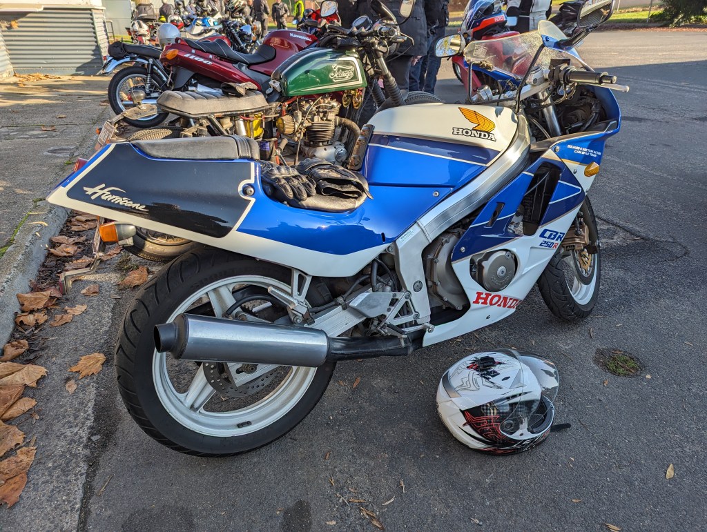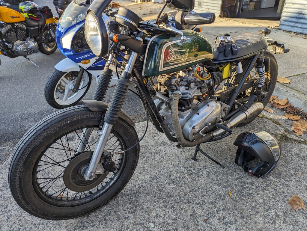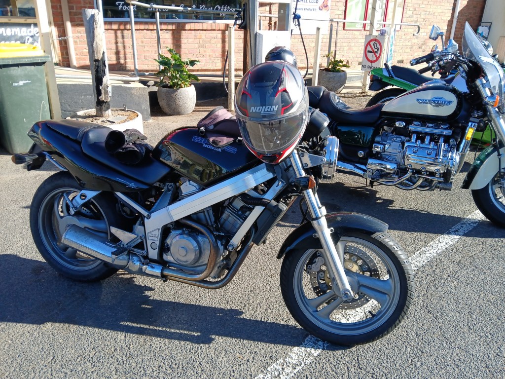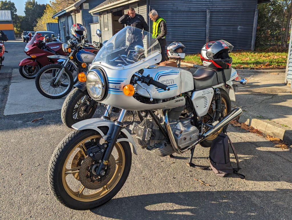 As the group of 14 riders gathered at the regular meeting point, a Ride leader was picked, with a classic Cafe racer CB750 four, a true beauty that turned heads wherever it went. The tail was held by the trusty Magoo and his wife Deb, in their iconic red plate car.