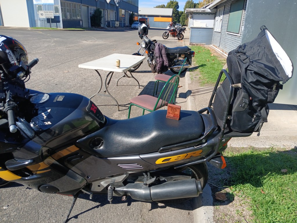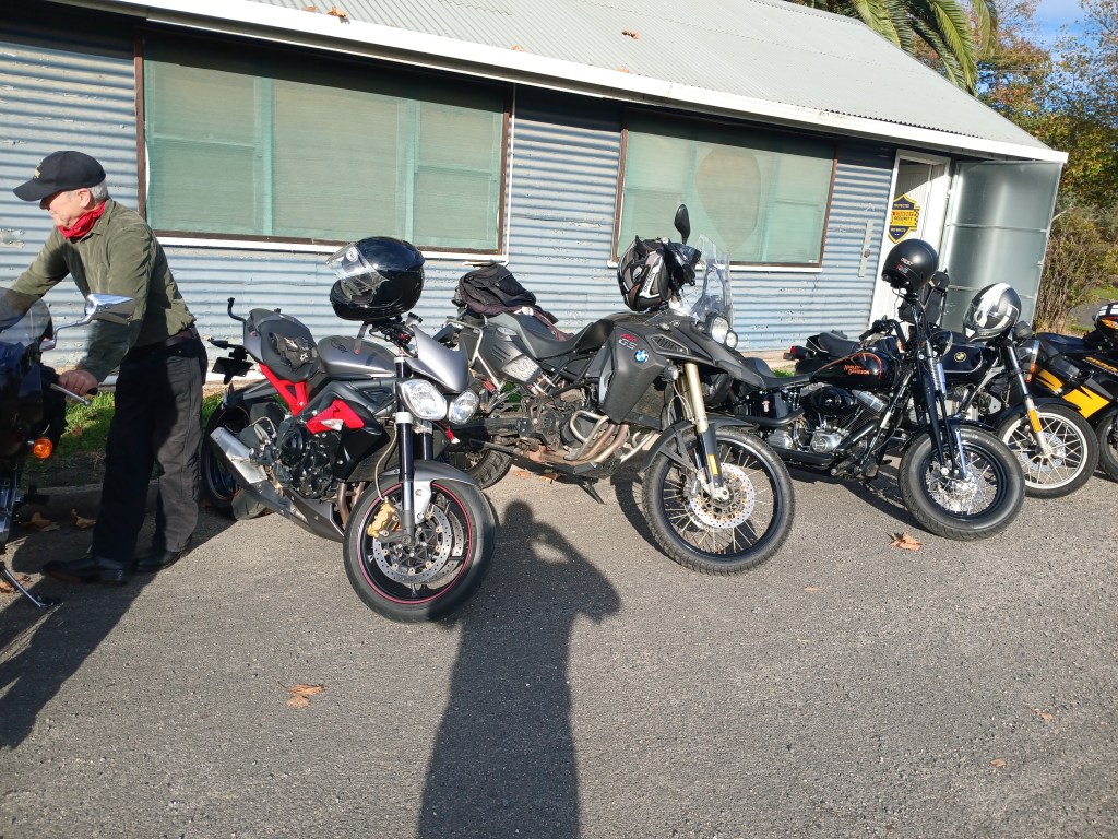 Missing in action was Beak on his tiny road bike, arriving back at the club rooms an hour or so after the main group., Beak taking a wrong turn at Albuquerque and almost going half way to Ballarat before turning around.
