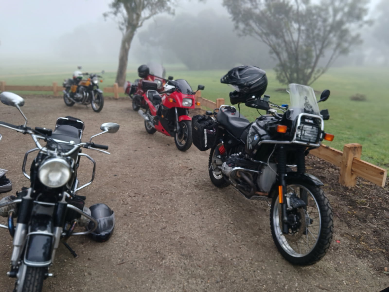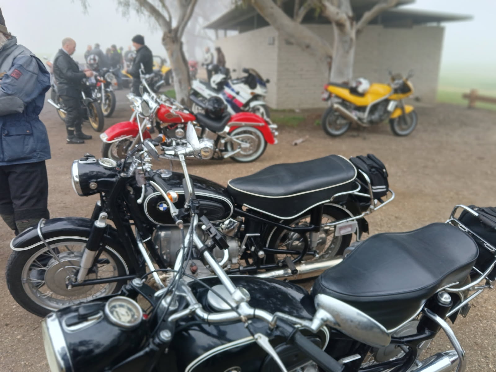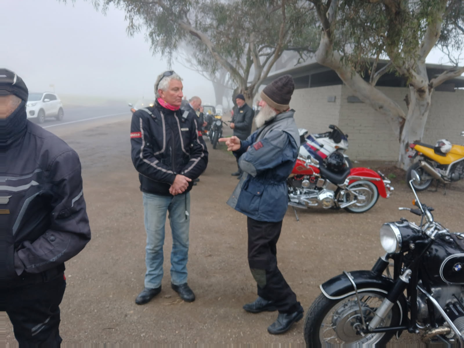 A cold & foggy start. Guzzi Phil astonished us when he arrived with a coffee he grabbed at the drive through.